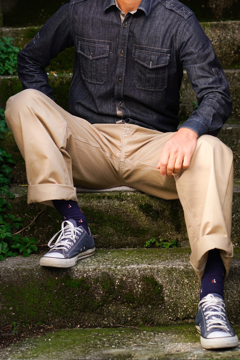 Questa creazione si ispira agli happy days da cui ricava la fedele riproduzione in pregiato denim oppure in cotone kaki giapponesi di ottima fattura.